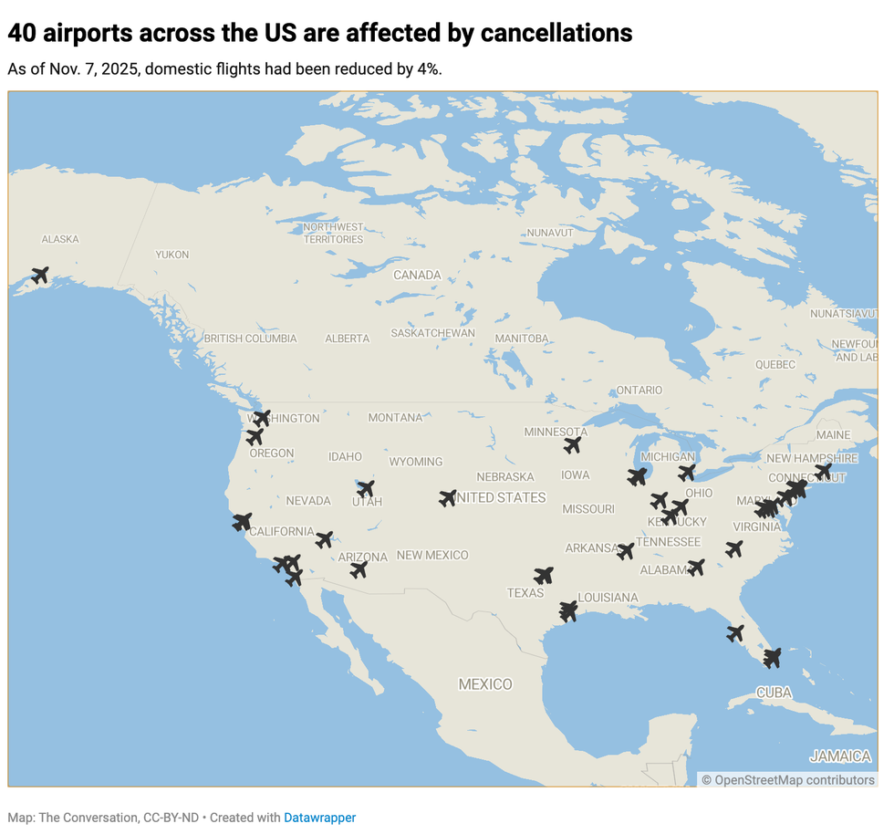 What To Know As Hundreds of Flights Are Grounded Across the U.S. – an Air Travel Expert Explains was originally published by The Conversation and is republished with permission.