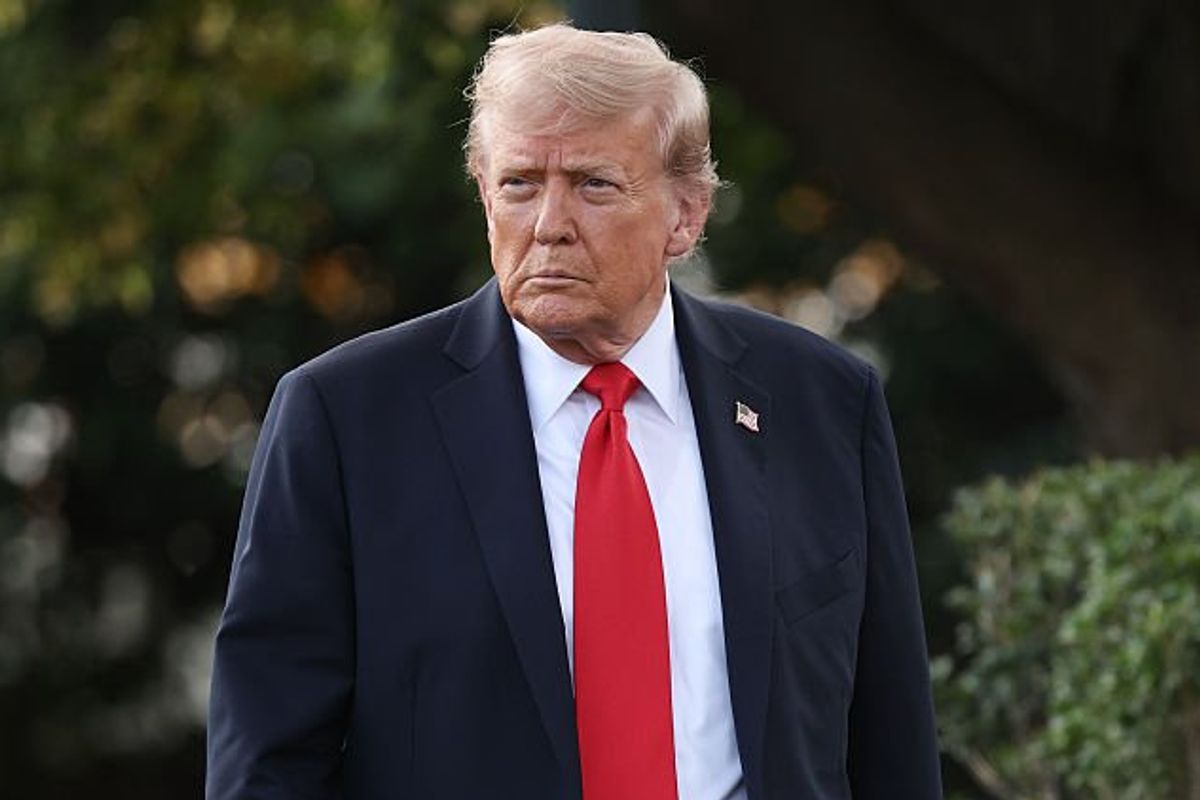 U.S. President Donald walks toward reporters while departing the White House on September 11, 2025 in Washington, DC. (Photo by Win McNamee/Getty Images)
